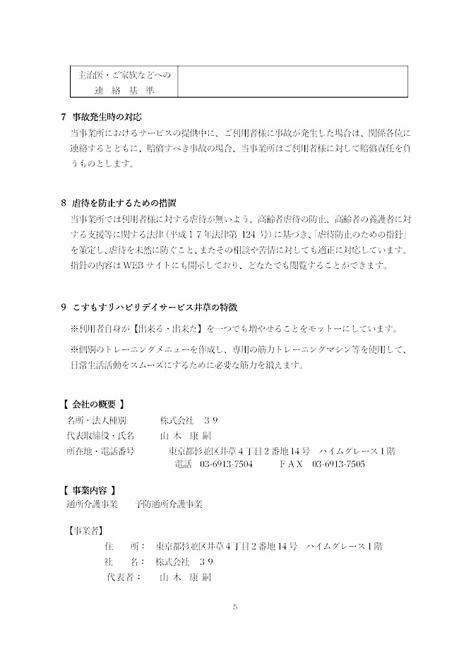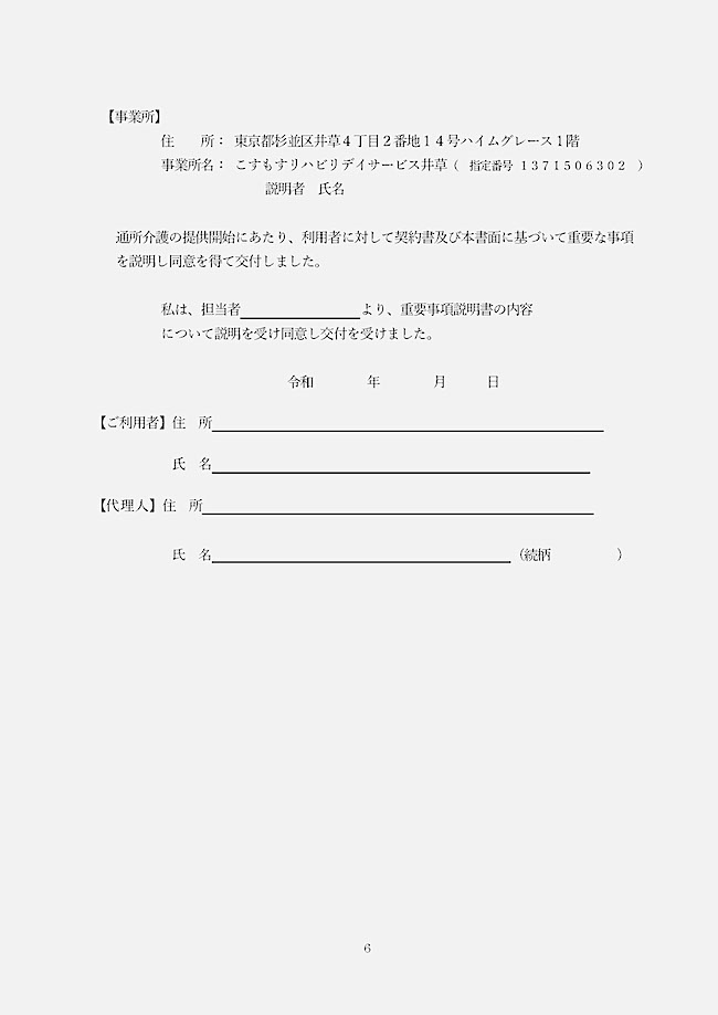 【4】 こすもすリハビリデイサービスでは 事業所の「通所介護重要事項説明書」を定め公表しています。