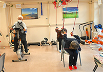 ‘こすもす 井草’ ならではの、 18種類以上の機能訓練マシーンを 使ったトレーニングは、 リハビリの効果が違います。